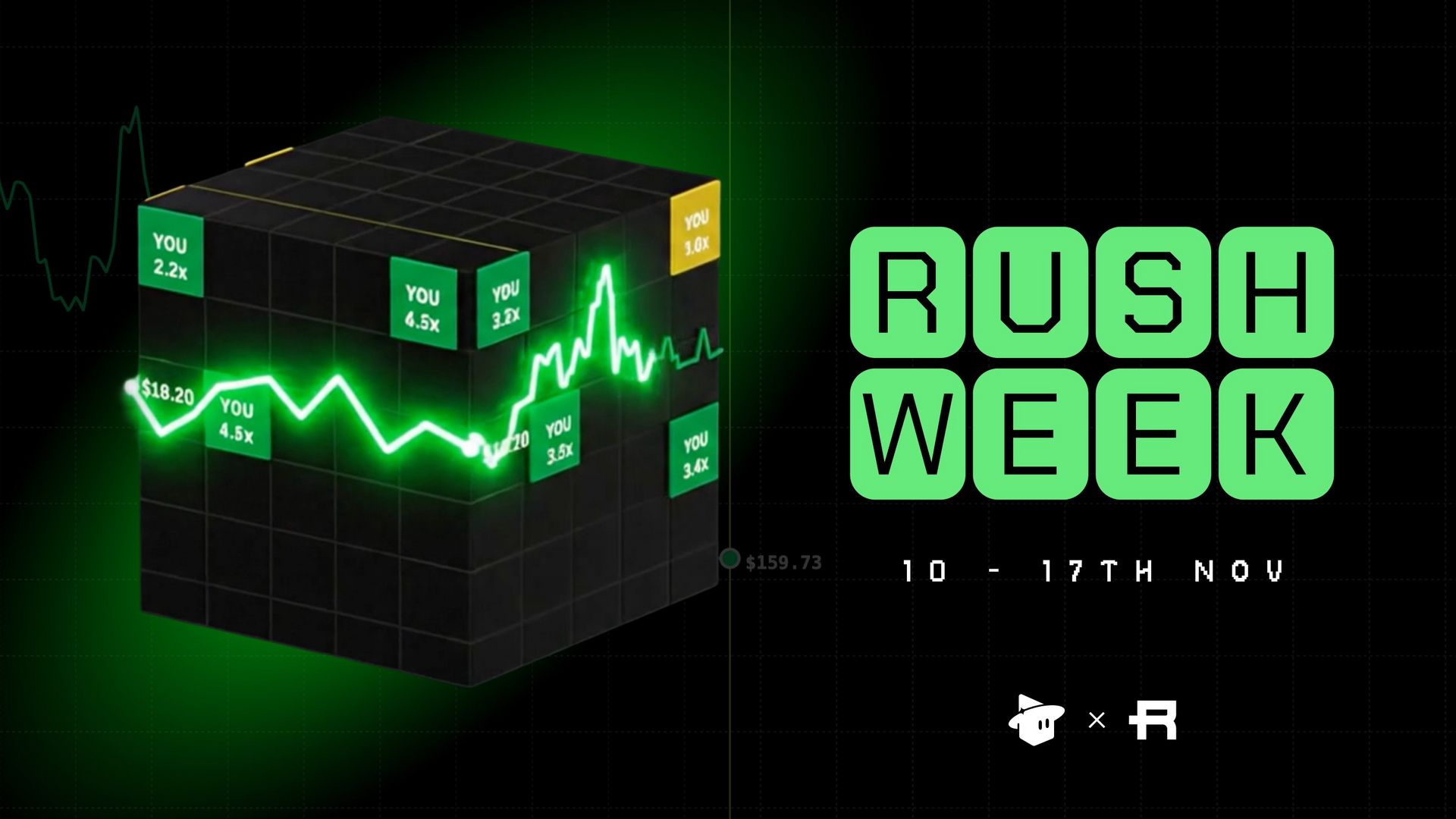 Rush keeps shipping. Since launch, they have executed 125k trades and processed over 500k transactions. All real-time and with zero fees. To celebrate the momentum, we kicked off a seven-day event with Rush, filled with special rewards for our community.
